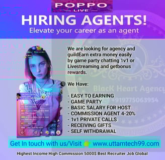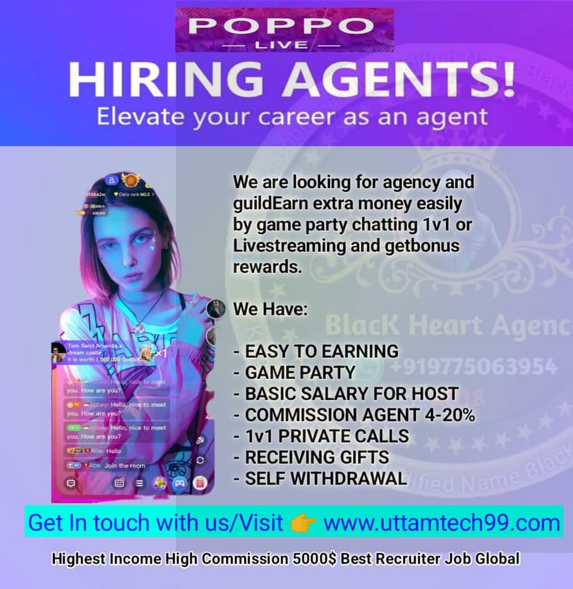 Learn how to create a Poppo Live account, recharge your account, earn money, register as a Poppo agent, recharge Poppo coins, get agent links, understand Poppo policies, and complete agency registration process.